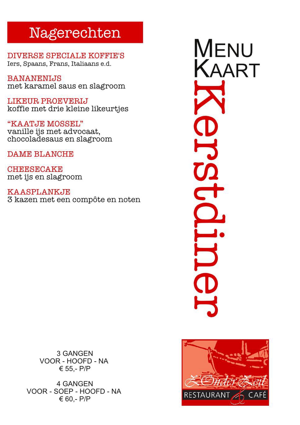 Ons kerstmenu serveren we op reservering op 1e en 2e Kerstdag.