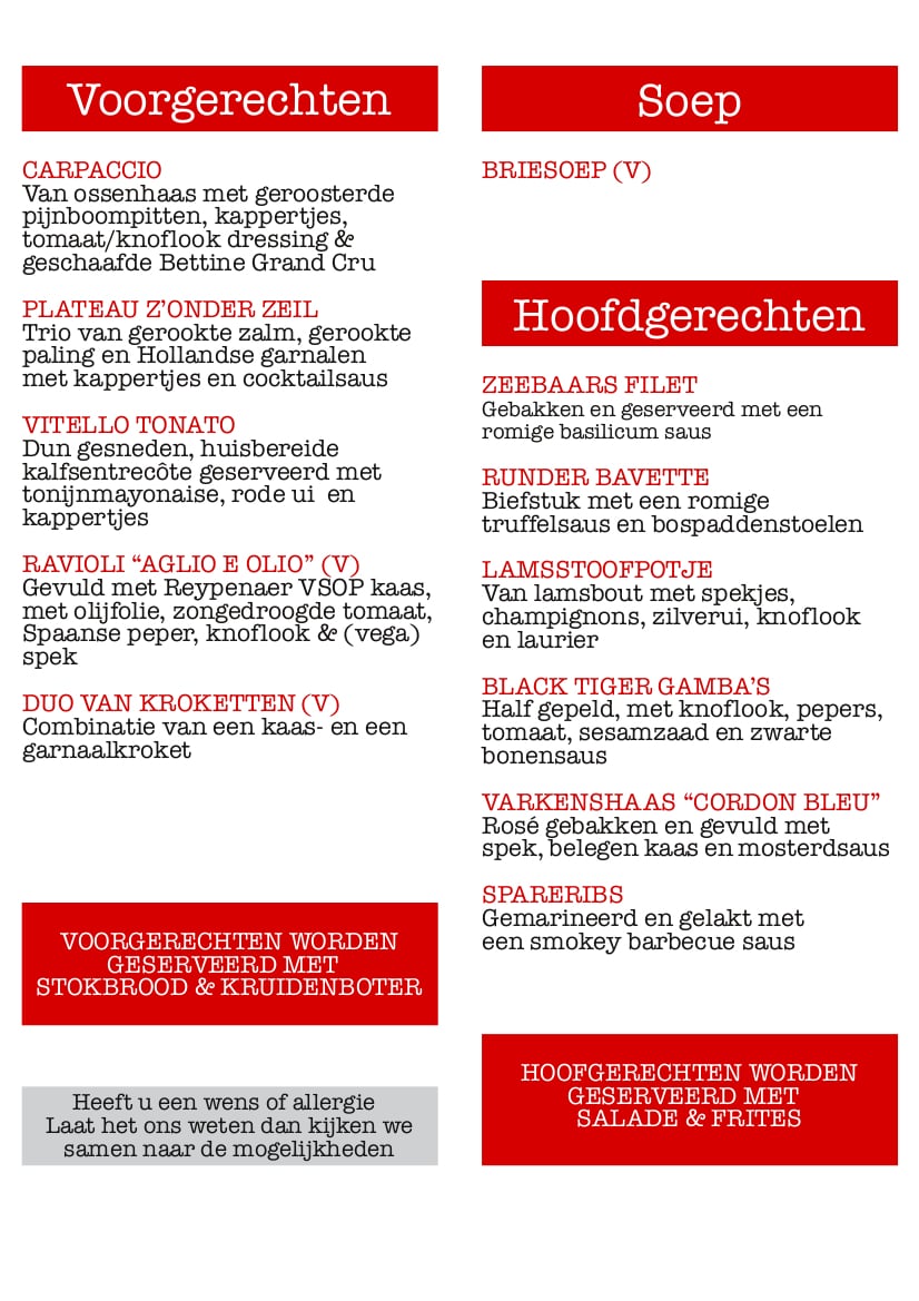 Wij vragen u de menu keuzes uiterlijk een week van te voren door te geven